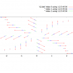 kappa =From computer algebra the divergence is zero but it is not clear if the Beltrami condition is met due to complicated identities between Bessel functions. Numerical evaluation gives the clear result that this is indeed a Beltrami function. It looks quite complicated in a 3D plot, therefore in Fig. 3 only one plane is plotted. The vetors rotate around rays in the radial direction. There is a strong central longitudinal component. Viewed from above (XY plane, Fig. 4) it can be seen that all vectors have the same angle of 45° against the radial direction. Will do a animation at the weekend, this may give surprising results.