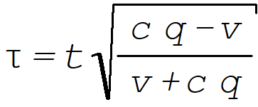 2. The theory of relativity would be consistent, if tau in eqs. (6) and (7) were identical. Replacing c by c*q with an adjustable factor q then gives: