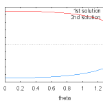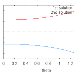 Subj: Dispersion curvesI evaluated the results for refracted and reflected frequencies graphically. there is a clear “dispersion” of frequency with the incident angle theta. The second solotution is the physical one in both cases, see figures.The refracted frequency goes to zero for theta to pi/2. This should be experimentally verifyable by glass for example, where there is nearly no absorption.